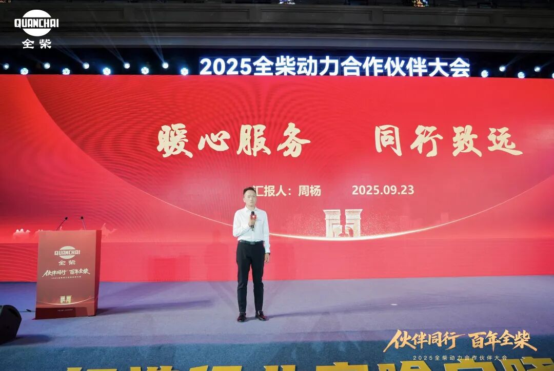 在服务层面,安徽全柴动力股份有限公司营销公司副总经理周杨做《暖心服务同行致远》主题报告,全面解读全柴服务体系的核心竞争力。目前全柴服务网络已达1889家,服务半径52公里,实现了服务与配件的高效触达。在此基础上,全柴还推动服务流程标准化、响应精准化,持续提升用户体验与品牌温度。未来,全柴还将持续推动服务体系数字化转型,进一步升级服务精准度与用户体验,持续强化“暖心服务”的品牌内核。