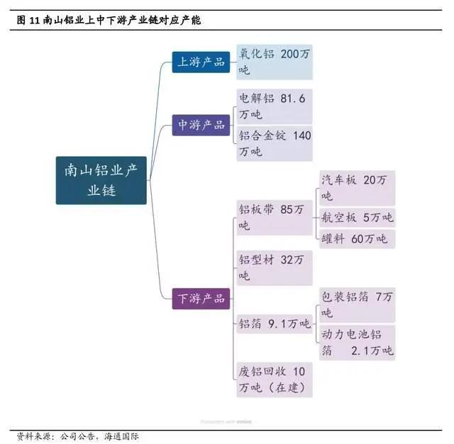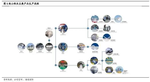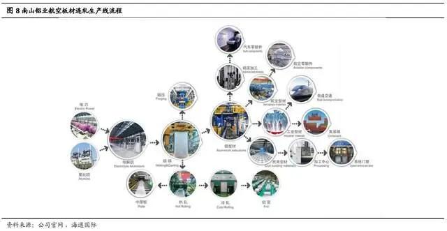 南山铝业是全球唯一一家在同地区拥有热电、氧化铝、电解铝、熔铸、铝型材/热轧-冷轧-箔轧/锻压、废铝回收(再生利用)的完整铝加工最短距离产业链的公司。