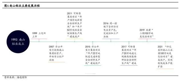 2019年公司投建“二期 100 万吨氧化铝项目”。“印尼宾坦南山工业园100万吨氧化铝项目”于2021年内建成投产,公司以较低成本实现了氧化铝的产能扩张。