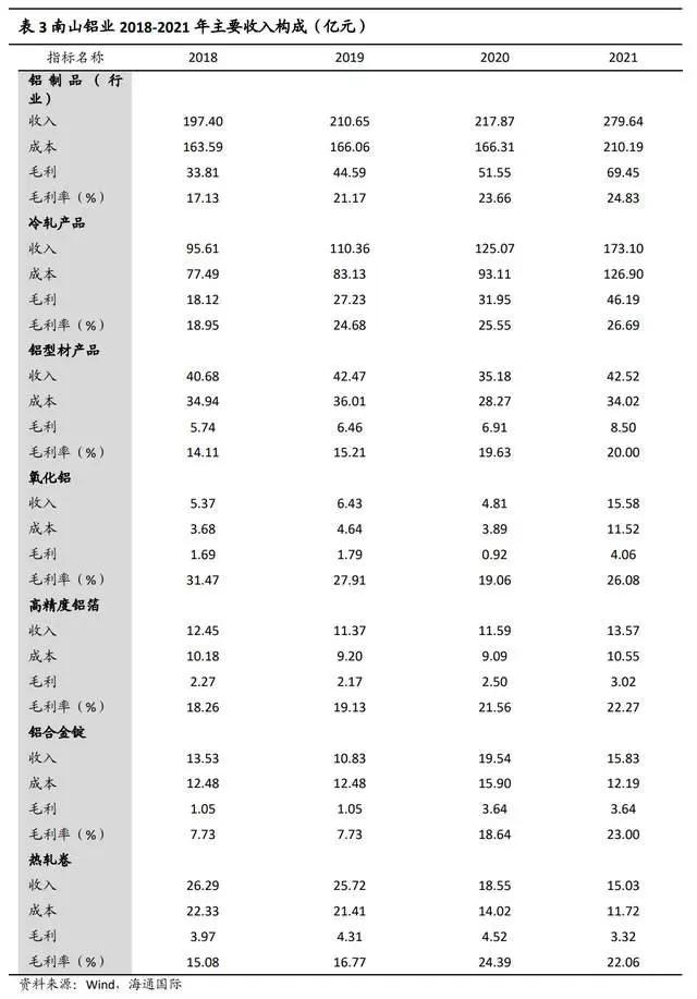 南山铝业主营产品类别有冷轧产品,铝、型材产品,铝合金锭,氧化铝,热轧卷,高精度铝箔等。