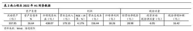 营收方面,公司营业收入 2022H1 较 2021H1 同比增加 42.82%。营业收入增量一方面来自公司持续调整产品结构增加高附加值产品的对外销售,另一方面来自铝锭价格的大幅上涨。同时,随着印尼一期和二期共 200 万吨氧化铝项目的达产,氧化铝粉销量也逐步增加,贡献了大量营收。