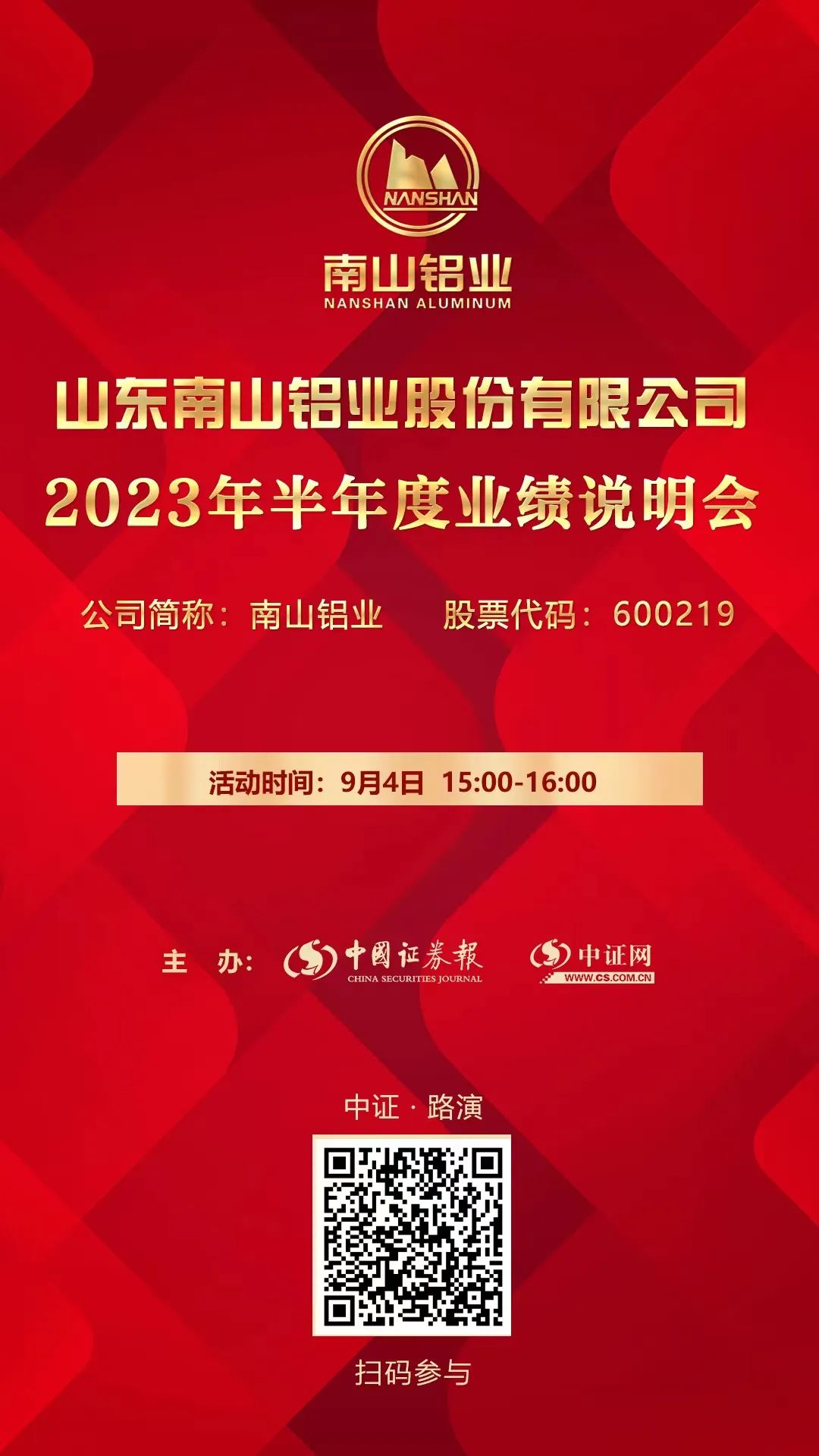 南山铝业2023年半年度业绩说明会9月4日在中证网举行