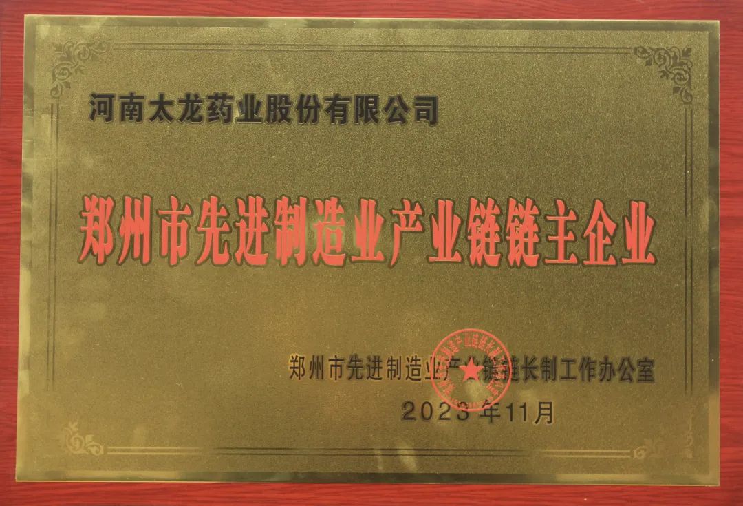 日前,郑州市工业和信息化局公布郑州市第一批先进制造业产业链“链主”企业名单,河南太龙药业股份有限公司成功入选生物医药产业链“链主”企业名单!