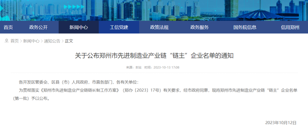 此前,郑州印发实施《郑州市先进制造业产业链链长制工作方案》,结合产业实际,确定重点发展智能终端、铝加工制品、氢燃料电池、人工智能、元宇宙、汽车制造、服装家居、装备制造、现代食品、节能环保、智能传感器、新材料、生物医药等13条产业链,实施“一链一专班一研发机构一图八清单”工作机制,明确产业链招商、项目建设、企业培育、协同创新、产业链协作等八大任务。