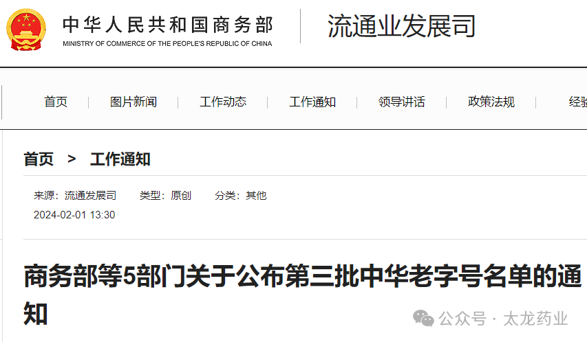 新一批中华老字号认定名单