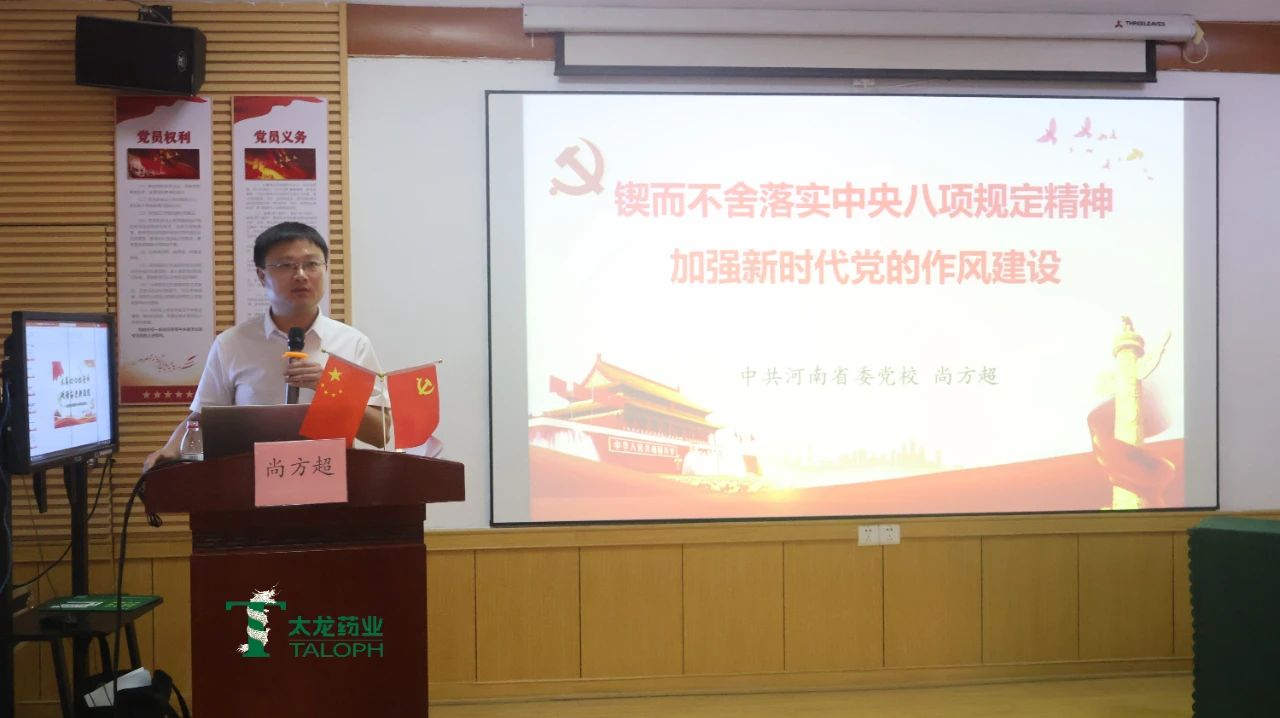 为庆祝中国共产党成立104周年,深入学习贯彻习近平新时代中国特色社会主义思想,进一步加强基层党组织建设,2025年7月1日下午,河南太龙药业股份有限公司于研发中心四楼会议室召开庆“七一”主题党日大会。公司党委成员、副总经理张立壮同志出席并讲话。公司全体党员、入党积极分子及部分员工代表齐聚一堂,共同回顾党的光辉历程,汲取奋进力量,凝聚发展共识。