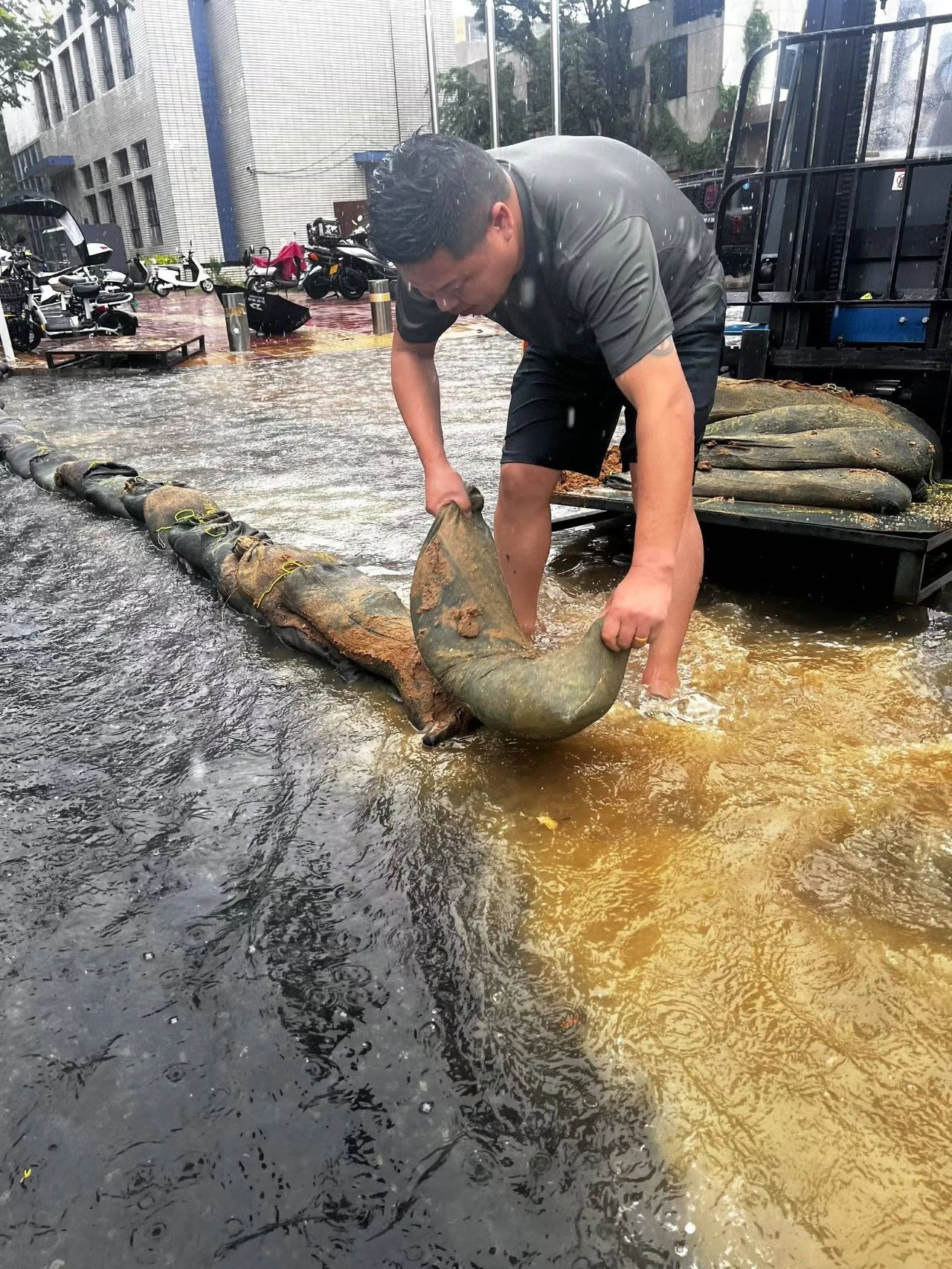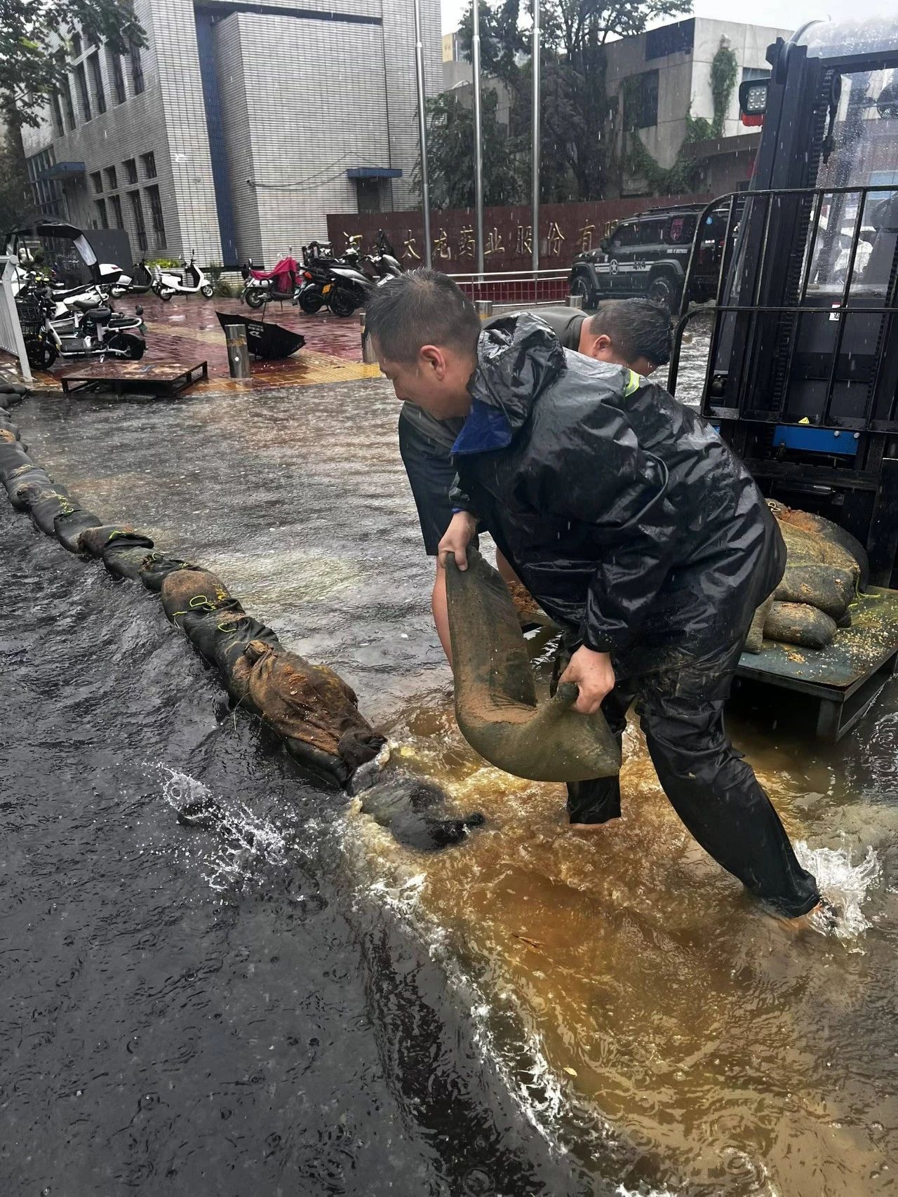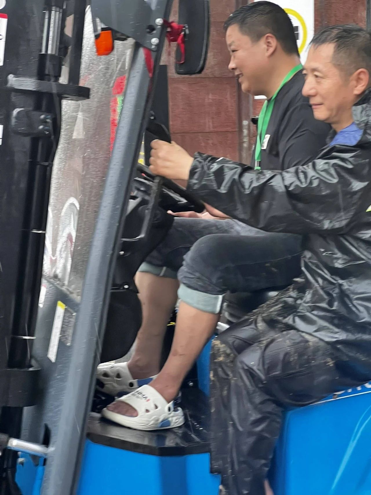 尽管雨水打湿了他们的衣服,却无法打断他们的专注,大家依然全神贯注、坚守岗位,用实际行动诠释着责任与担当。叉车上堆放着一捆捆沙袋,随时准备用于加固堤坝,防止积水进一步蔓延。最终,在大家的共同努力下,积水得到了有效控制,厂区内的安全隐患被及时排除。暴雨虽然给城市带来了不便,但也展现了太龙人在面对自然灾害时的坚韧与团结。此次事件再次证明,在困难面前,团结一致、勇于担当是克服一切挑战的关键。