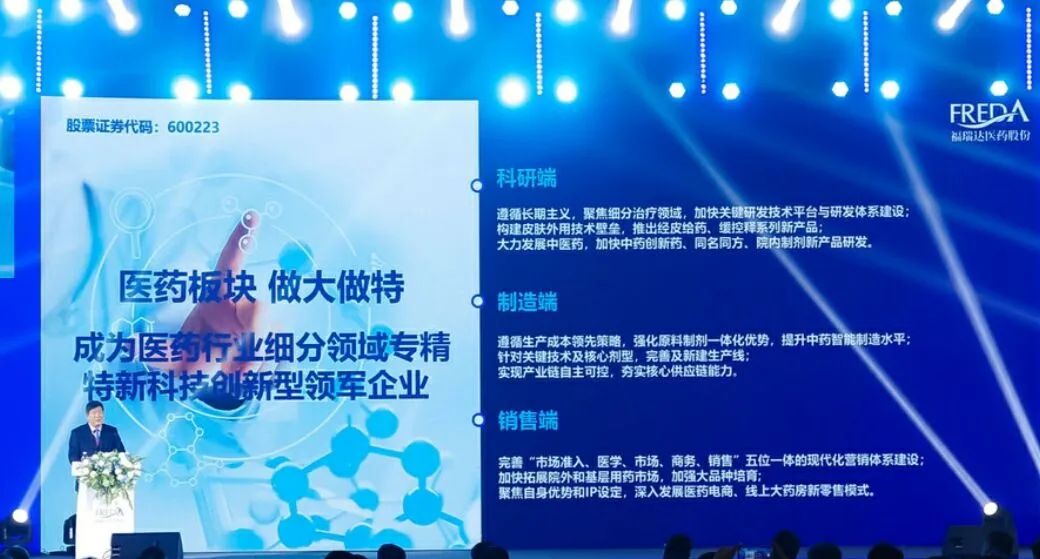 鲁商福瑞达医药股份有限公司党委书记、董事长,山东福瑞达医药集团有限公司党委书记、董事长贾庆文发布鲁商福瑞达全新战略时介绍,鲁商福瑞达将积极培养全球视野,对接国家战略,实施“1234”高质量创新发展战略,即夯实一个优势,聚焦二大主业,推进三化发展,实施四大工程,致力于成为社会信赖国际知名的医药健康领军企业。其中,在未来发展及聚焦二大主业方面,鲁商福瑞达将医药板块的核心任务定为做特做大,致力成为医药行业细分领域专精特新的科技领先企业;化妆品板块的核心任务是做强做优,致力成为美妆行业的顶级企业。