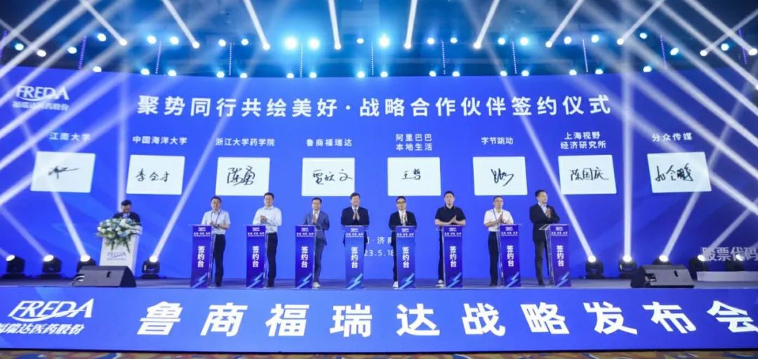 在战略合作伙伴签约环节,贾庆文同中国海洋大学青岛海洋生物医药研究院、浙江大学现代中药研究所、江南大学生物工程学院、阿里巴巴本地生活、抖音、上海视野经济研究所、分众传媒等高校或企业代表签约。