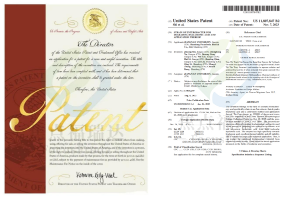 近日,鲁商集团所属焦点福瑞达与江南大学联合申报的“Strain of enterobacter for degrading hyaluronic acid and application thereof”(一种肠杆菌及其应用)获美国发明专利授权。