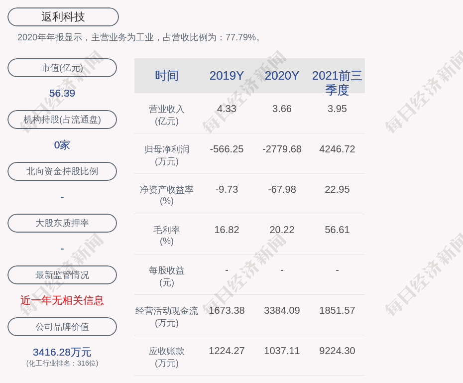 2020年年报显示,返利科技的主营业务为工业,占营收比例为:77.79%。