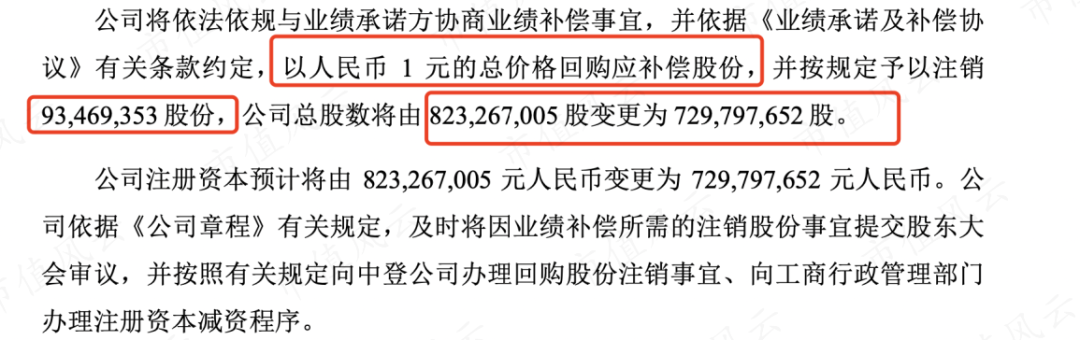 对赌失败后,公司决定以“1元回购”的方式进行业绩补偿。