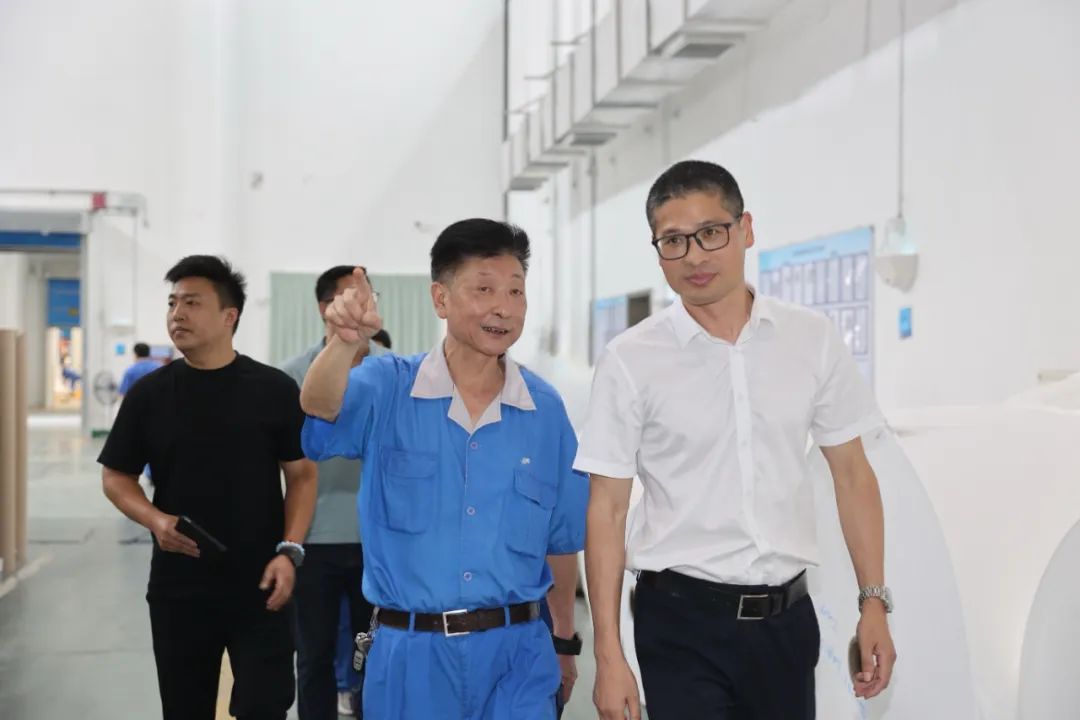 7月29日,海盐县沈荡镇党委书记戴燕卫带队一行三人莅临民丰特纸开展实地调研。公司党委书记、董事长、总经理曹继华,总经理助理刘耀斌全程陪同。