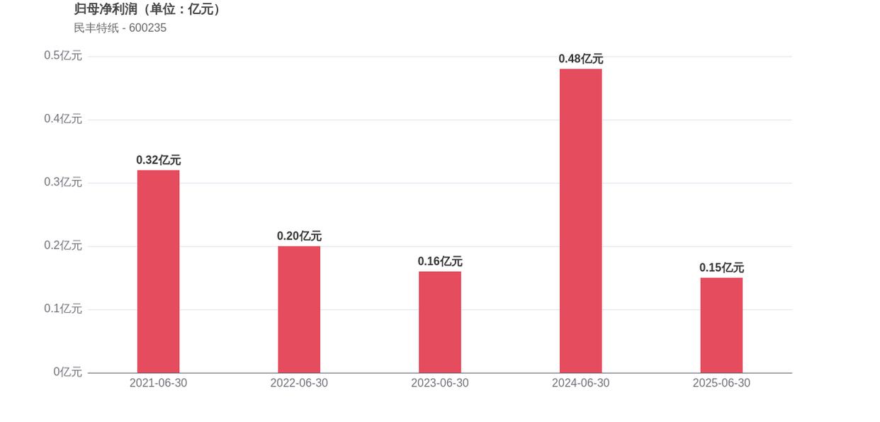 8月16日,民丰特纸发布2025年中报,民丰特纸是轻工制造行业中的代表性企业,其主营业务包含纸浆、纸和纸制品的制造和销售。截至8月15日,民丰特纸股价报收于6.45元,总市值达到22.66亿元。