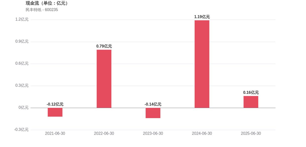 在经营稳健性方面,民丰特纸面临存货周转效率下降的挑战,存货周转天数增至133.77天,较上年同期增长22.02%,表明存货管理压力加大。经营活动产生的现金流净额为0.16亿元,较2024年同期1.19亿元大幅下滑。此外,2025年上半年的资产负债率为50.06%,同比增长3.64个百分点,这意味着公司债务负担有所加重。