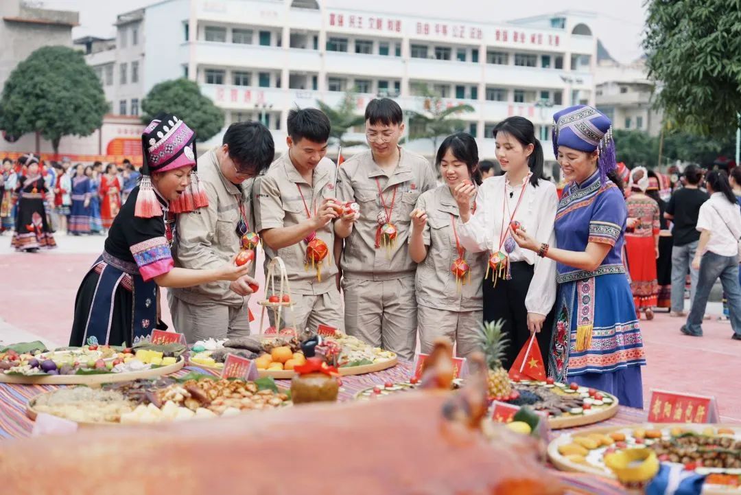▲大唐桂冠电力职工与瑶乡群众一起欢度壮族“三月三”。