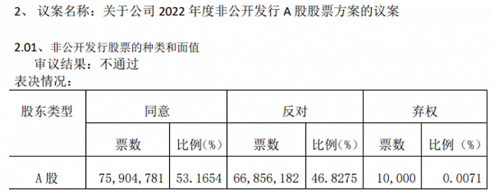 1月6日海南椰岛公告称,《关于公司2022年度非公开发行A股股票方案的议案》未通过股东大会审议。表决结果显示,同意比例53.17%,反对比例46.83%。