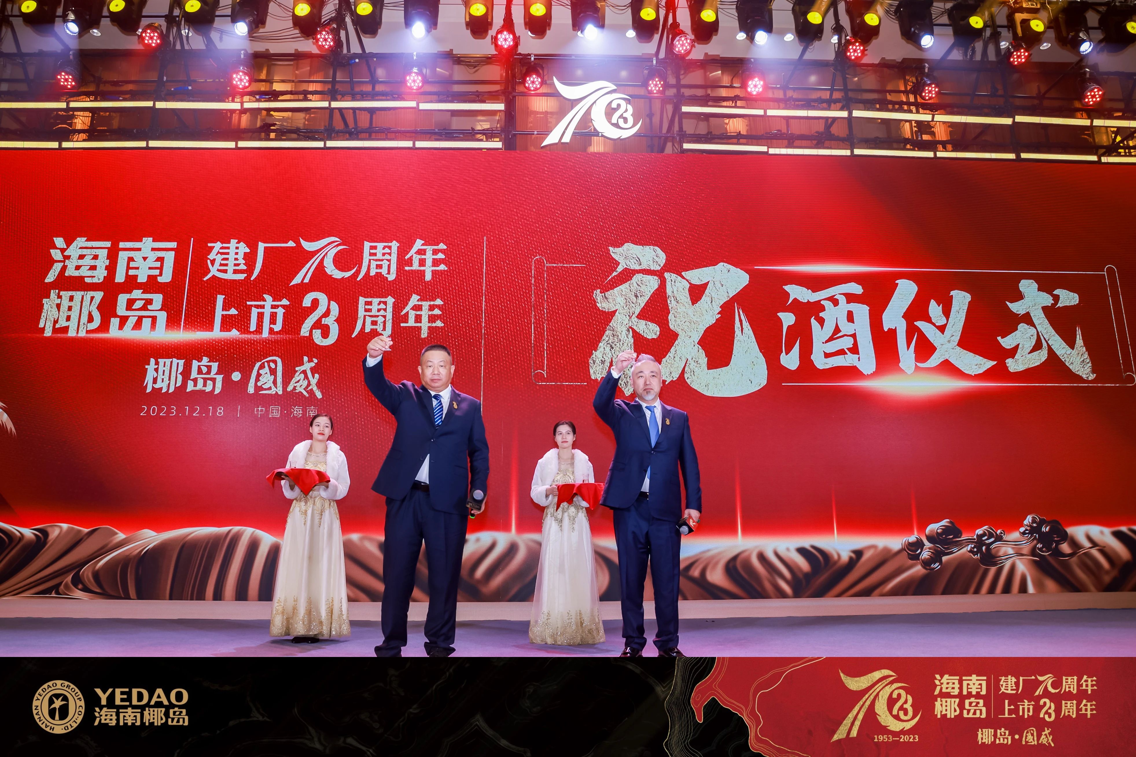 12月18日,“7023——海南椰岛建厂70周年、上市23周年庆典系列活动”在海南海口隆重召开。庆典系列活动以“海南椰岛建厂70周年、上市23周年”为主题,围绕“初心70年椰岛再出发”“献礼70年携手新赛道”“感恩70年建功自贸港”三个篇章以及“致敬70年共赴新未来”答谢晚宴举行。数百余人欢聚一堂,感受海南椰岛七十年拼搏奋斗所带来的成就与荣耀,见证海南椰岛激动人心的历史性时刻。