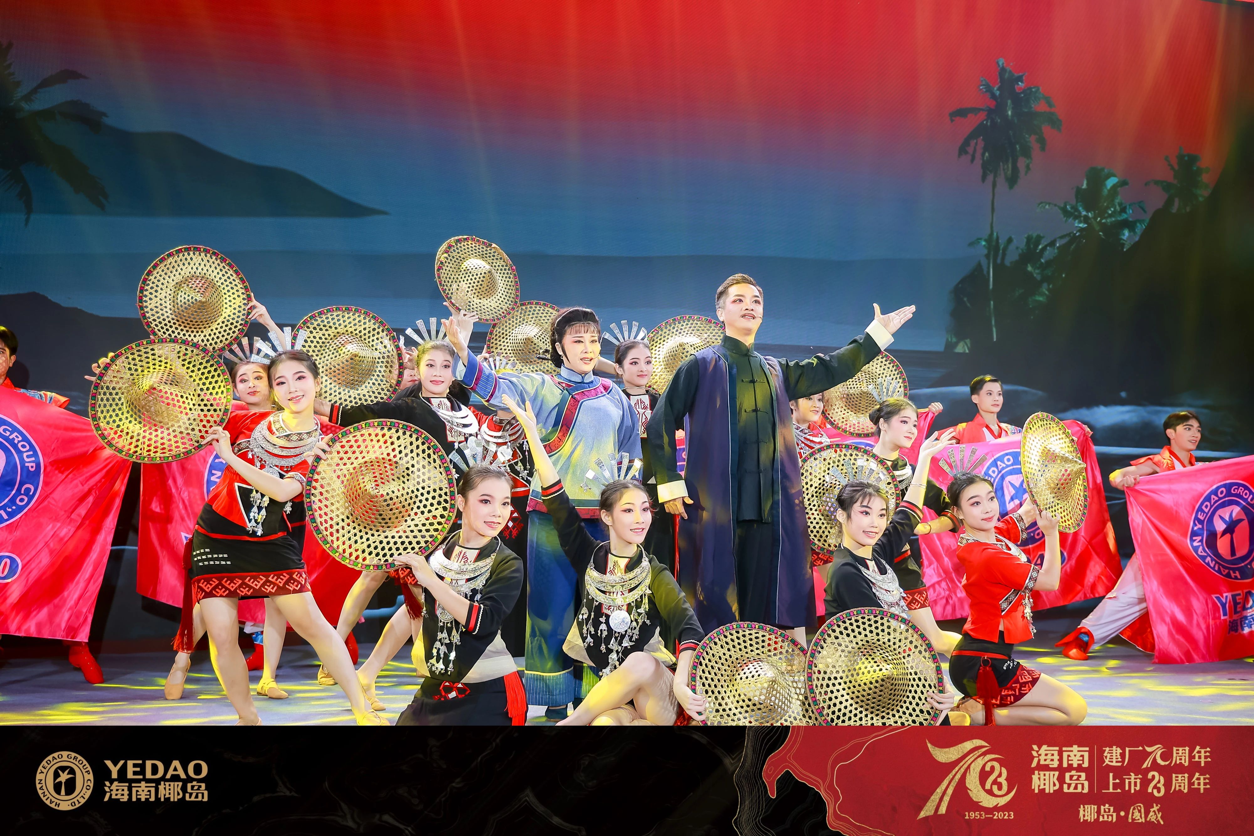 最后,“致敬70年共赴新未来——海南椰岛建厂70周年上市23周年庆典晚宴”以激情昂扬、气势恢宏的原创舞蹈《椰岛魂》启幕。红色赞歌唱响晚宴、双非遗亮相舞台,“一纸秘方、满门忠烈”的椰岛精神深深感染着现场观众。