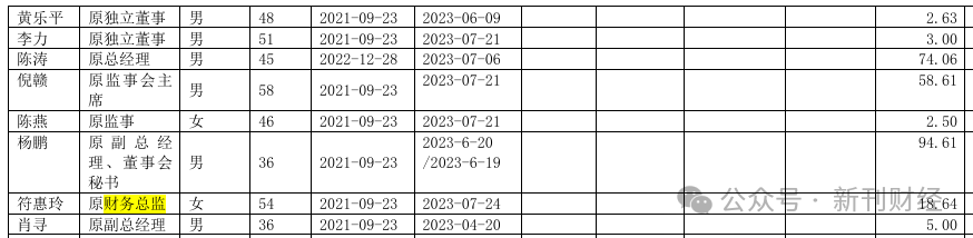 值得注意的是,马贺2023年度所获薪酬仅为31.73万元,但通过增持获得了公司186.28万股的股权。此外,同年公司人事动荡明显,出现了多名关键人物离职的情况。除了原总经理陈涛外,还有两名具有财务背景的高管也相继离职,分别是原财务总监符惠玲和原副总经理肖寻。