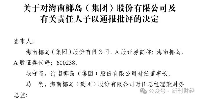 在马贺代行海南椰岛财务总监期间,公司财务信息披露方面似乎问题突出。2024年6月17日,因公司未及时披露员工职务侵占资金事项,上交所发布纪律处分决定书,对海南椰岛公司及马贺等相关责任人给予通报批评,并记入资本市场诚信档案。