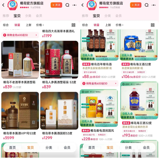 另外,椰岛草本酱酒系列产品销售也远不及预期,两款高端产品在天猫平台至今零成交。