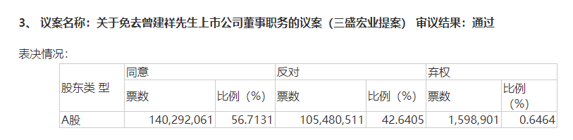 直至2022年6月24日,由三盛宏业提出的关于免去曾建祥上市公司董事职务的议案,在公司2022年第三次临时股东大会上,获得通过。