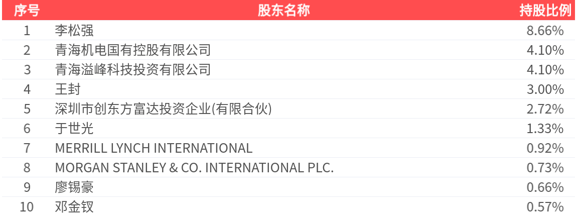 公司股东户数为4.66万户,前十大股东持股数量为1.18亿股,占总股本比例为26.79%,前十大股东持股情况如下: