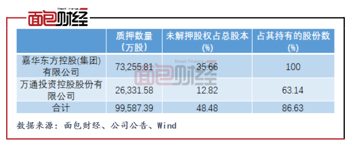 万通控股与公司控股股东嘉华控股为同一实际控制人控制的企业,合计持有公司11.50亿股,占公司总股本的55.97%。截至该质押公告披露日,嘉华控股及万通控股累计质押公司股份9.96亿股,占其合计持股数的86.63%,占公司总股本的48.48%。