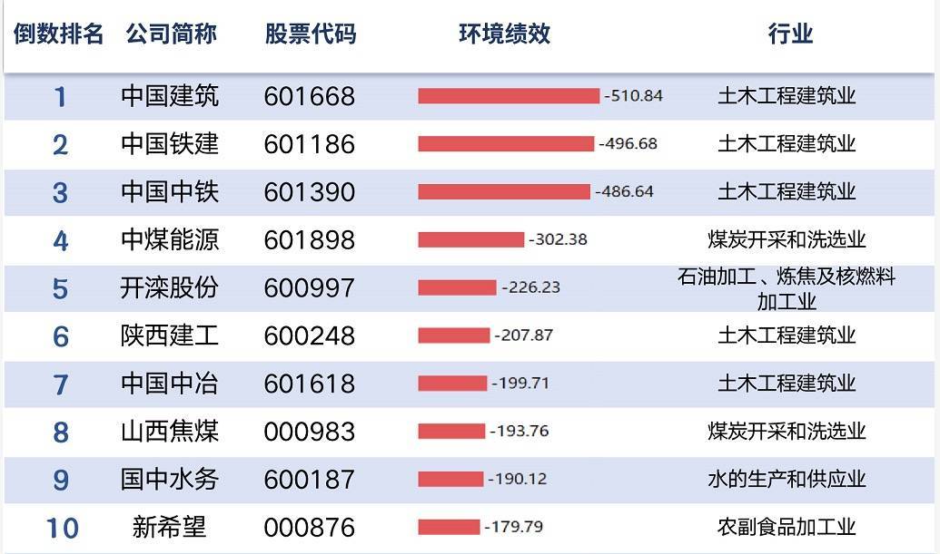日前,“2021年度中国上市公司环境绩效榜”正式发布。在“后100位”企业中,作为陕西A股上市公司的“陕西建工集团股份有限公司”(600248.SH)环境绩效-207.87,榜上有名,排名倒数第六。
