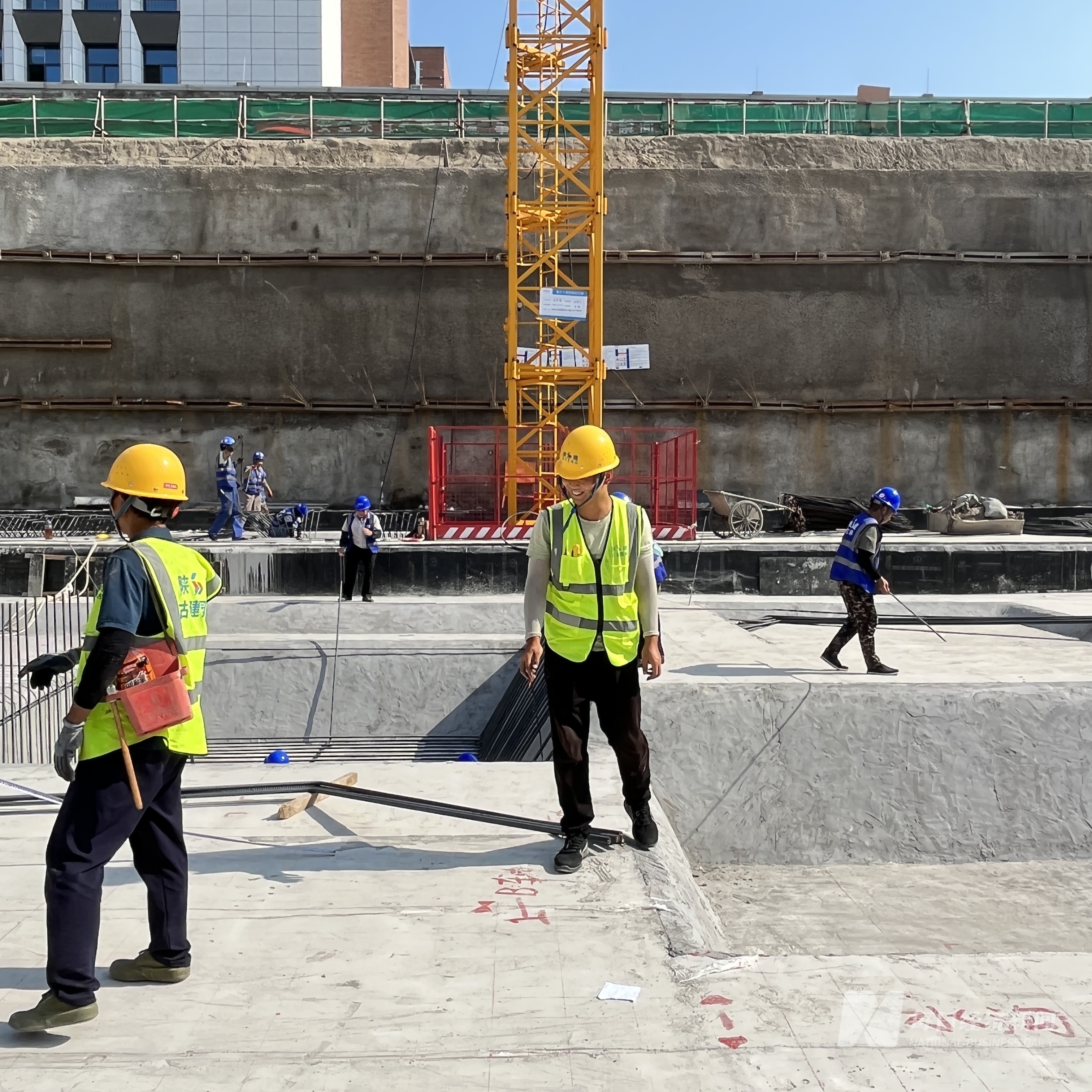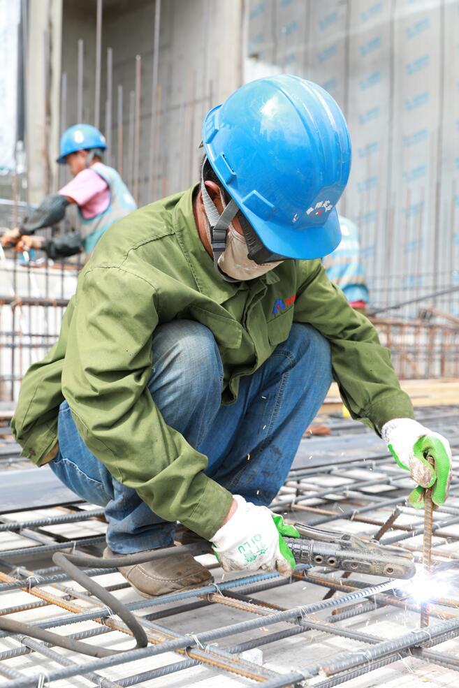 《每日经济新闻》记者来到陕西建工项目建设现场,记者看到,塔吊正将加工好的构建有条不紊地输送到施工现场;钢筋工人正在对钢筋进行绑扎,多名建筑工人佩戴安全帽、身穿工作服,各就其位。