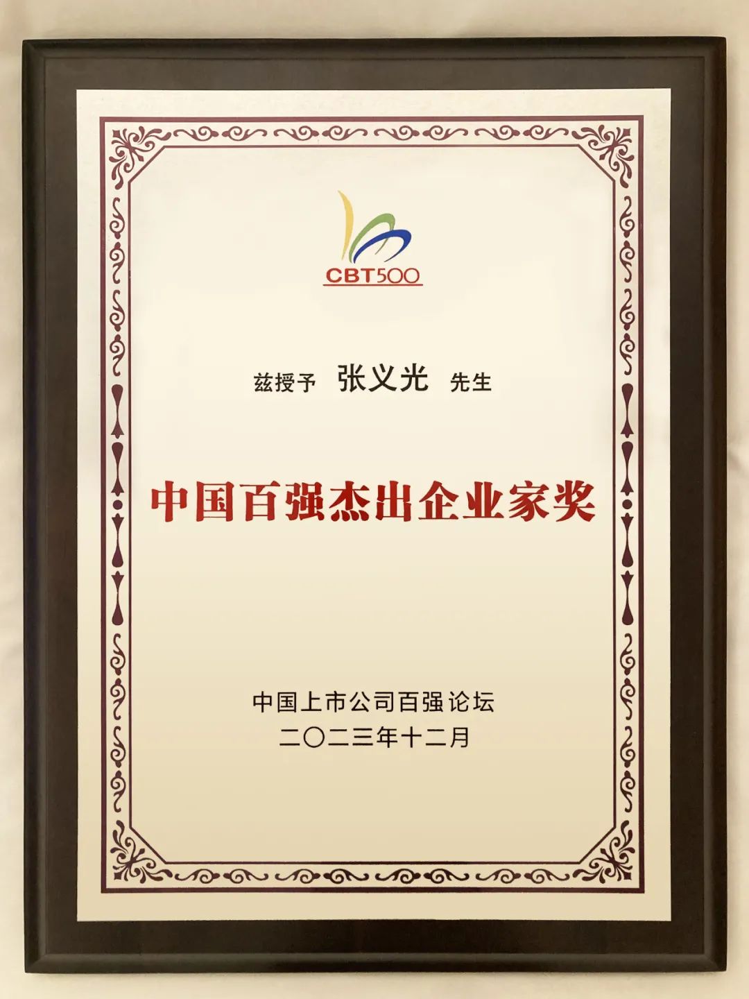 (中国百强杰出企业家奖)