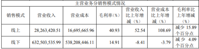 从销售模式来看,2022年两面针公司线上营收2826.3万元,同比上升52.54%,线下渠道营收则下降了8.41%。