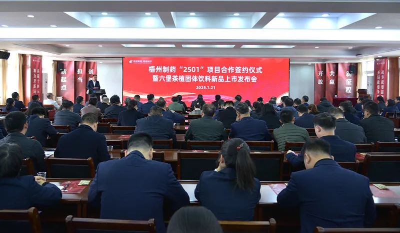 1月21日,中恒集团旗下梧州制药“2501”项目合作签约仪式暨六堡茶植固体饮料新品上市发布会在梧州市举行。这是梧州制药发挥广西首批链主型企业作用,强工业优势、重自主创新、促产业升级、拓产品管线的成功实践。