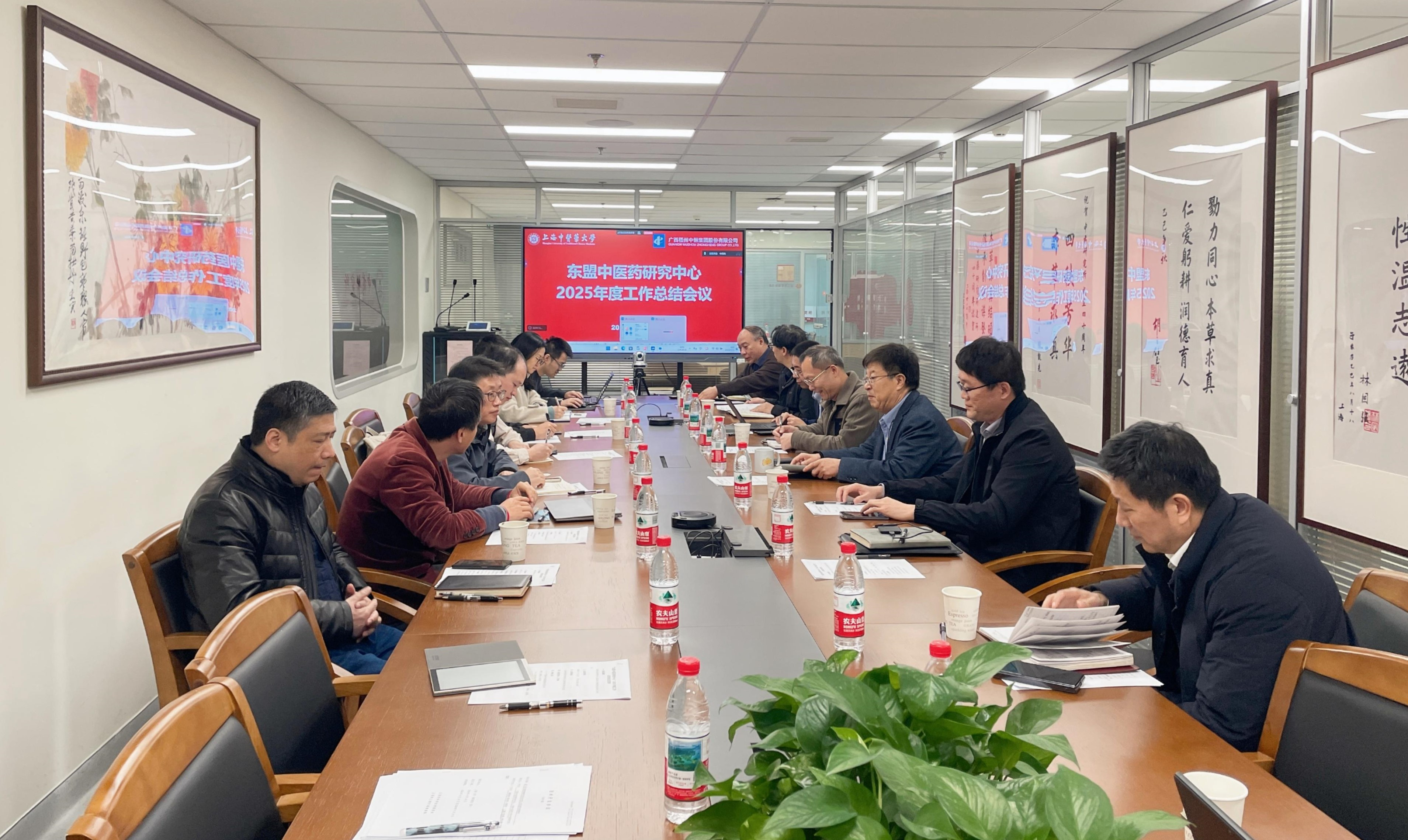 近日,中恒集团与上海中医药大学共建的“东盟中医药研究中心”(以下简称“中心”)2025年年度总结会议在上海中医药大学顺利召开。会议听取各项目2025年进展情况以及中心整体运行情况,审议并部署中心2026年工作计划。