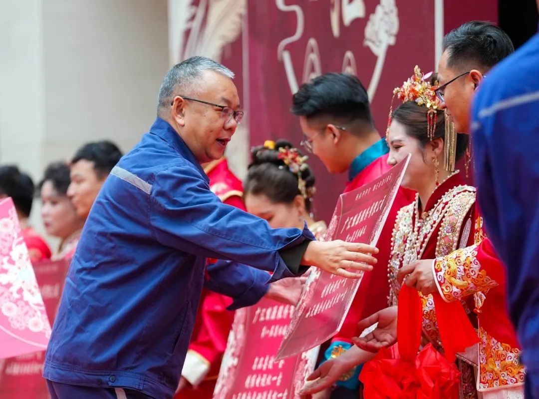 本次参加婚礼的11对新人,有来自生产一线的技能人才,有专注技术攻关的岗位能手,有护航安全生产的保障人员。对日常忙于工作的他们来说,这样一场国风元素十足的集体婚礼,是广汇能源送给他们最好的新婚礼物。