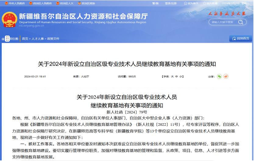 3月21日,自治区人社厅公布了2024年新设立自治区级专业技术人员继续教育基地名单,广汇能源培训学校榜上有名。