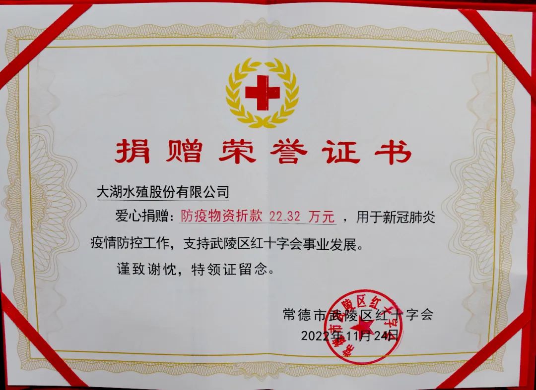 大湖水殖股份有限公司作为常德本土的上市企业,扎根常德,回报社会,始终是大湖人坚守的初心和使命,企业在实现自身绿色生态高质量发展的同时,不忘回馈社会,不仅成立慈善基金长期开展扶贫助学、扶危济困的公益慈善工作,还通过“产业链”带动、“种苗”带动、“品牌”带动,依托行业形成的完整产业链优势,采用“公司+基地+农户”模式,在扶贫攻坚、乡村振兴等方面积极发挥龙头带动作用。