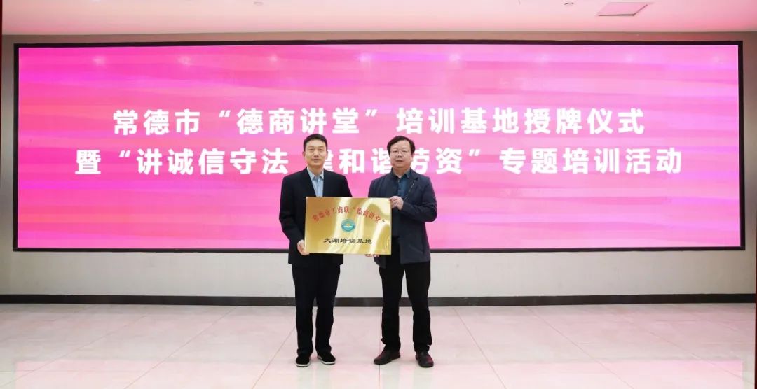 授牌仪式由常德市工商联党组成员、副主席徐玲英主持。在大家的共同见证下,常德市委统战部副部长、市工商联党组书记余仁辉为大湖股份授牌,大湖股份董事、德山酒业董事长郭志强作为代表上台接受常德市“德商讲堂”培训基地牌匾。