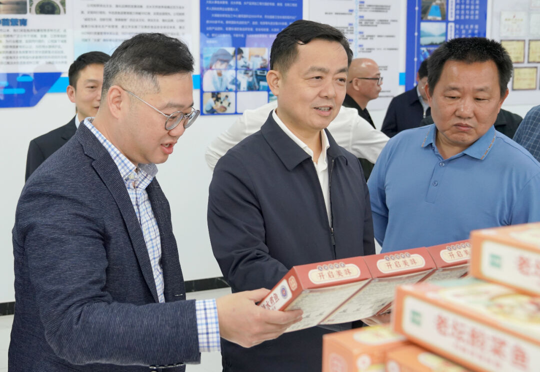 在大湖股份预制菜产业园,刘国龙一行实地参观了加工中心和研发中心,详细了解了大湖股份预制菜的产品品类、市场销售等情况,对大湖股份预制菜良好的发展势头给予充分肯定,并鼓励企业要坚定信心,认真研究市场,依托优质水产品资源,将资源优势转化为发展优势,把企业经营好、发展好。