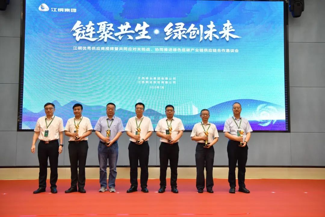 “链聚共生?绿创未来”——7月4日,江铜集团优秀供应商授牌暨共同应对关税战、协同推进绿色低碳产业链供应链合作恳谈答谢会在南昌隆重举行。