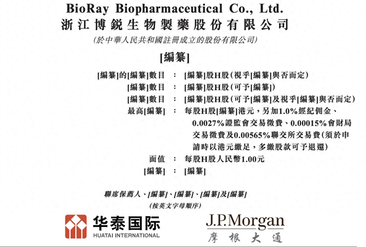 瑞财经刘治颖 1月6日,浙江博锐生物制药股份有限公司(以下简称:博锐生物)向港交所主板递交上市申请,联席保荐人为华泰国际、摩根大通。