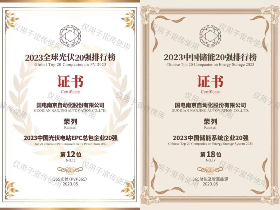 近日,由365光伏和365储能发起并主办的“2023全球光伏/中国储能20强排行榜”全球线上正式发布,国电南自首次上榜“2023中国储能企业20强”,并且再次荣列“2023中国光伏电站EPC总包企业20强”。