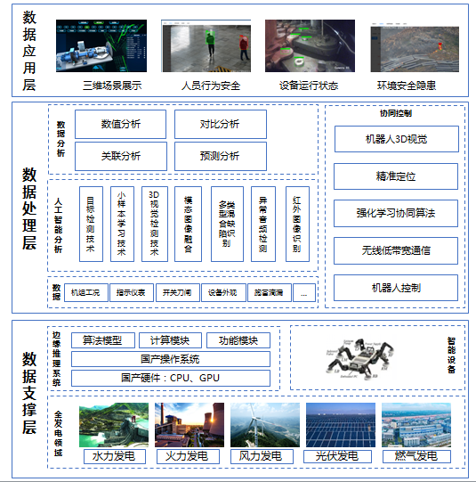 项目依托工信部人工智能产业创新“揭榜挂帅”项目,研究基于边缘计算、人工智能、机器人、多传感器融合等技术,着眼于风、光、水、火多种发电类型,致力于攻克视觉人工智能技术在安全管控、智能巡检等应用中面临的小样本检测、多类型混合缺陷检测等难点。通过构建国产边缘计算服务平台及电力行业深度应用数据集及算法库,实现对人员、设备、环境的安全风险预警,以人工智能技术赋能电力产业,相关产品成功运用于中国华电、国能集团、粤电集团、两网等多个试点项目。