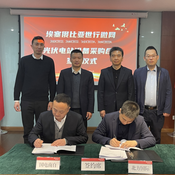 近日,国电南京自动化股份有限公司(以下简称:国电南自)与北方国际合作股份有限公司(以下简称:北方国际)成功签署埃塞俄比亚世行微网光伏电站项目设备采购分包合同,合同的成功签署,标志着国电南自、北方国际联合体中标的埃塞微网光伏项目正式进入实施阶段。