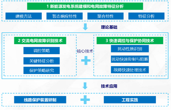 项目针对高比例可再生能源接入与高比例电力电子设备应用给输电线路保护带来的影响,研究利用新能源发电设备调制特性与控制特性的交流电网故障识别技术,研制基于变流器调制和控制特性的线路保护装置,为新能源送出线路继电保护提供了解决方案,保障高比例新能源接入电网的安全可靠运行。