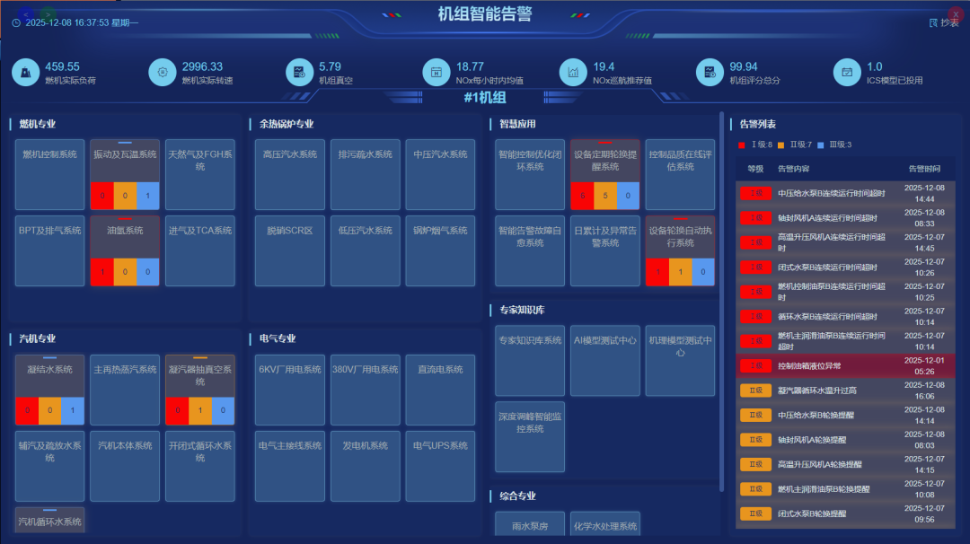 故障全息感知模块的核心模型投入率达100%,机组运行参数稳定性显著提升,发电气耗优于行业先进水平,成功达成“减负增效、智慧管理、智能控制”三大目标,设备利用效率与经济效益实现双重提升。