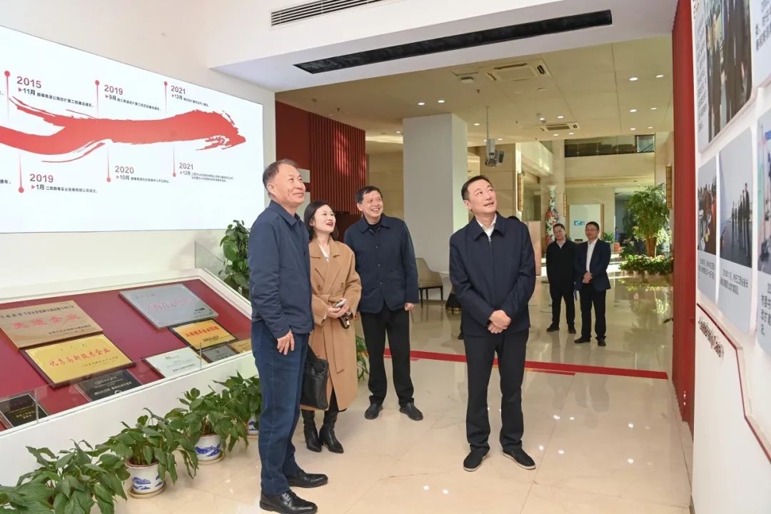 巨荣云现场参观了公司展厅,观看了企业宣传片,深入了解赣粤高速发展历程,并对赣粤高速近年来取得的成绩表示肯定。他表示,赣粤高速成立较早、底蕴深厚、贡献突出,作为江西唯一公路类上市公司,在江西高速公路事业发展进程中先行先试、勇挑重担,发挥了服务交通强省建设和社会经济发展的重要功能,在行业内保持着较好影响力和美誉度。希望赣粤高速继续发挥示范引领作用,一如既往支持和参与中国公路学会工作,实现更大范围、更高层次的合作共赢,共同推动行业高质量发展。