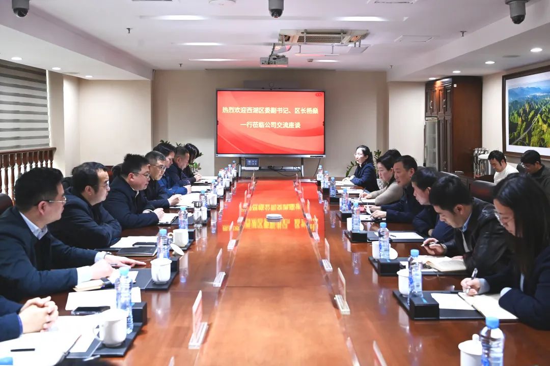 2月26日,西湖区委副书记、区长杨燊一行到赣粤高速走访调研。区政府副区长李辉,区楼宇经济发展中心书记仰玉文,赣粤高速党委书记、董事长韩峰,党委委员、副总经理徐义标,党委委员、董事会秘书付艳出席,双方相关部门、单位负责同志参加座谈。