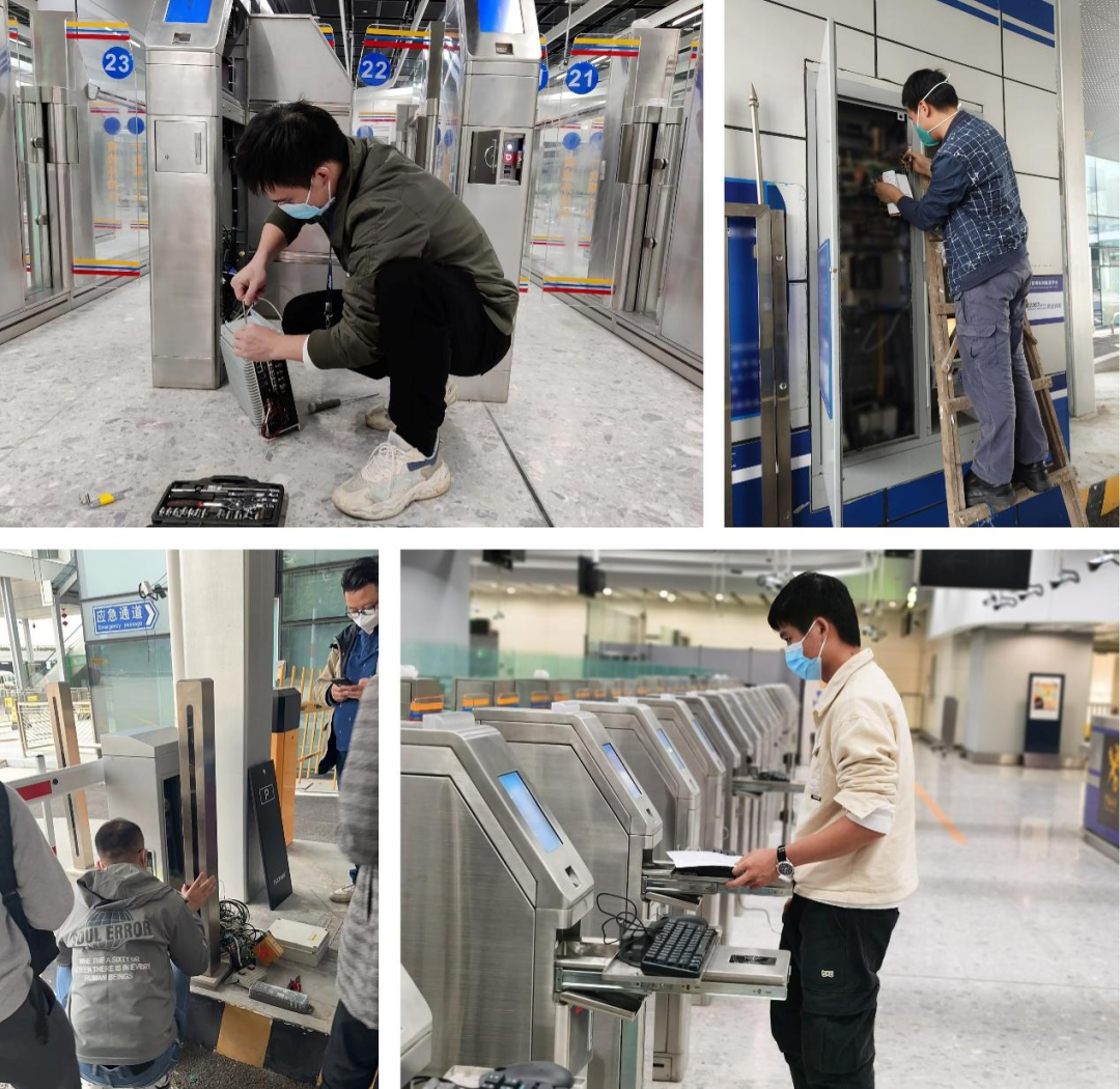 2022年12月,深圳航信在接到边检单位的协作通知后,第一时间成立专项工作小组,制定具体实施方案,细化工作流程。安排专人推进各口岸快捷通道设备和自助采集终端的重点检查工作;安排技术人员进行设备检修调试,做好口岸复通的硬件保障;提前与边检单位进行沟通协调,派驻运维人员现场值班巡视,确保口岸复通后旅客通关顺畅。元旦假期期间,深圳航信出入境项目团队奋战在口岸一线,加班加点争抢时间,“白+黑”连轴转检修设备、测试流程,确保按期完成首批复通口岸200多条通道所有设施设备的全面检测调试。